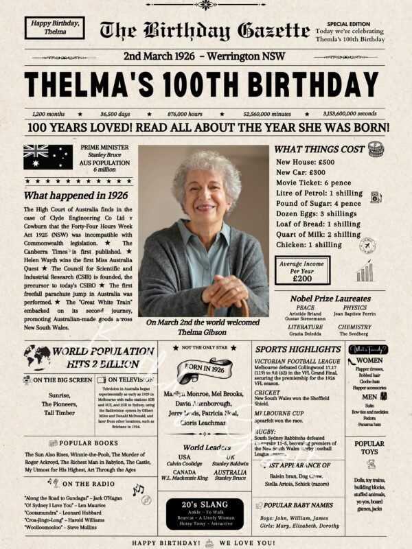100th Birthday Newspaper Australia