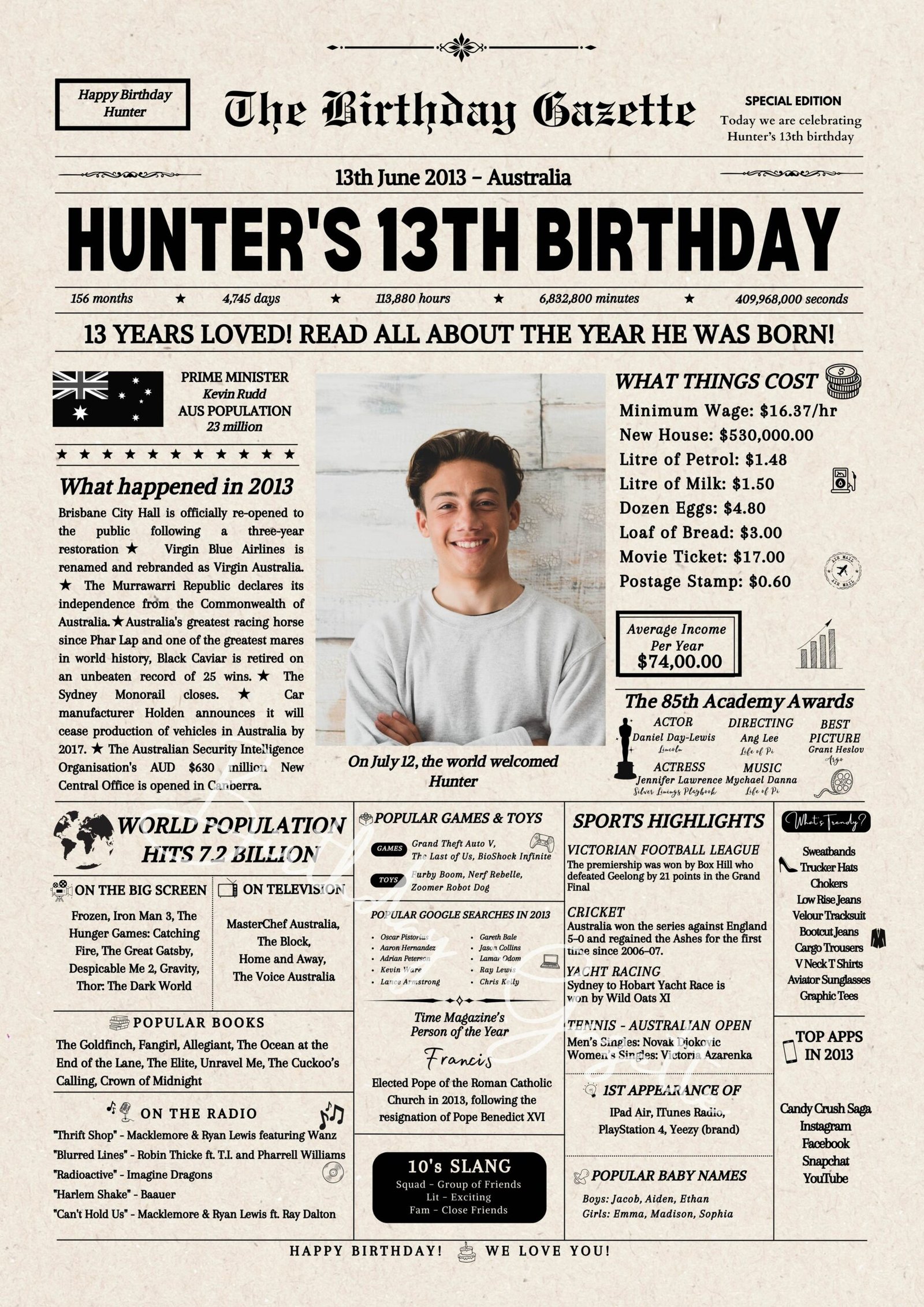 13th Birthday Newspaper Customized Australia